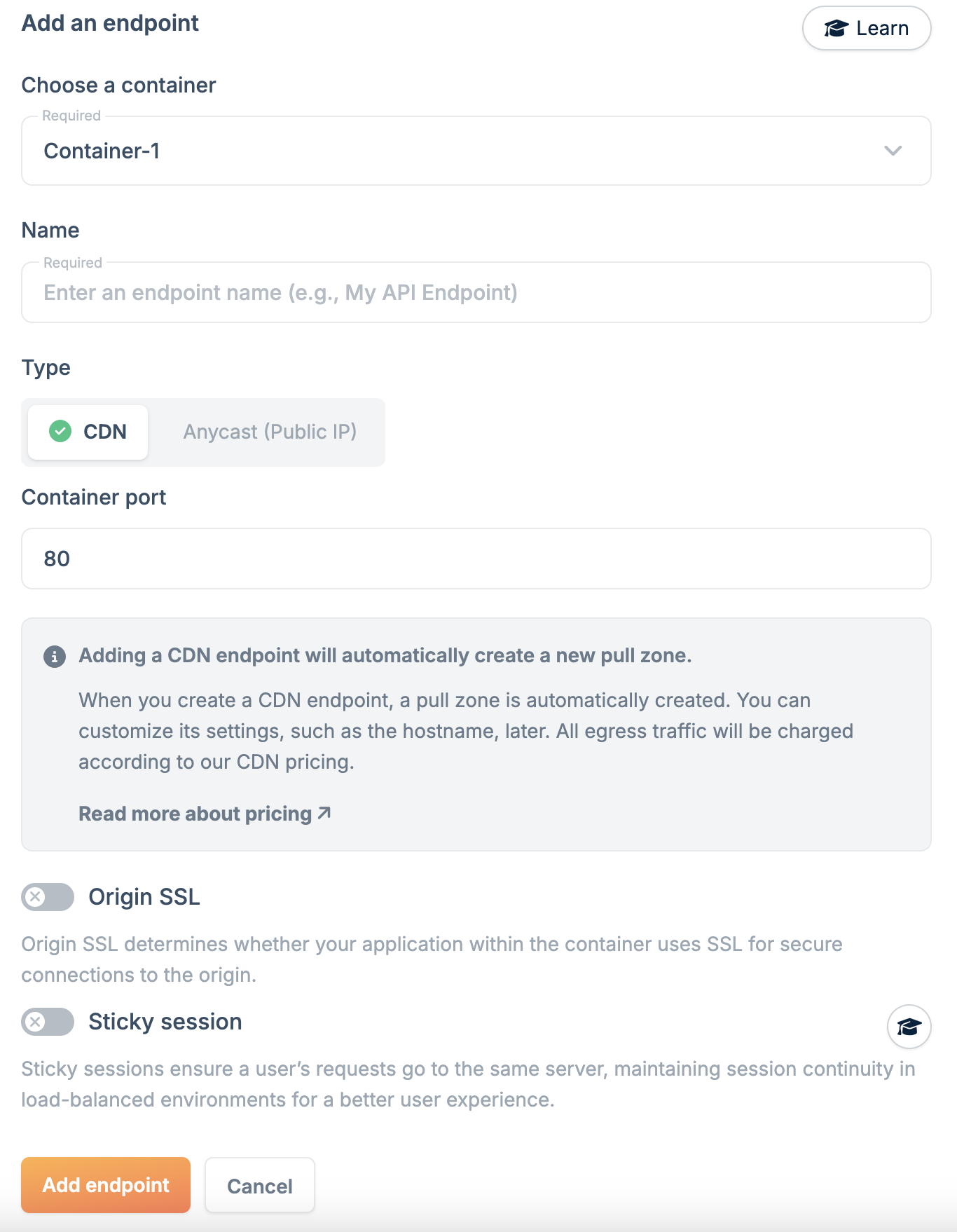 - Click Add Endpoint.
