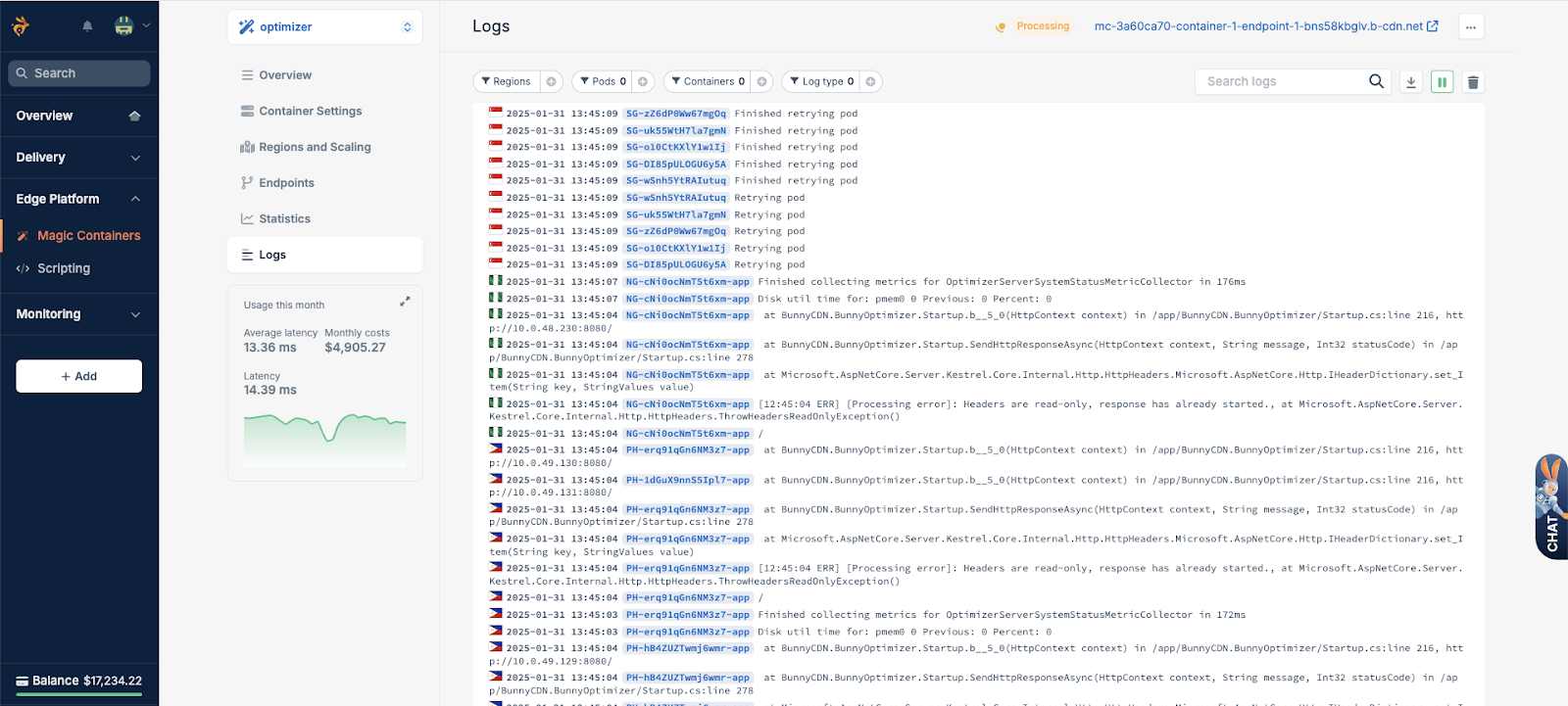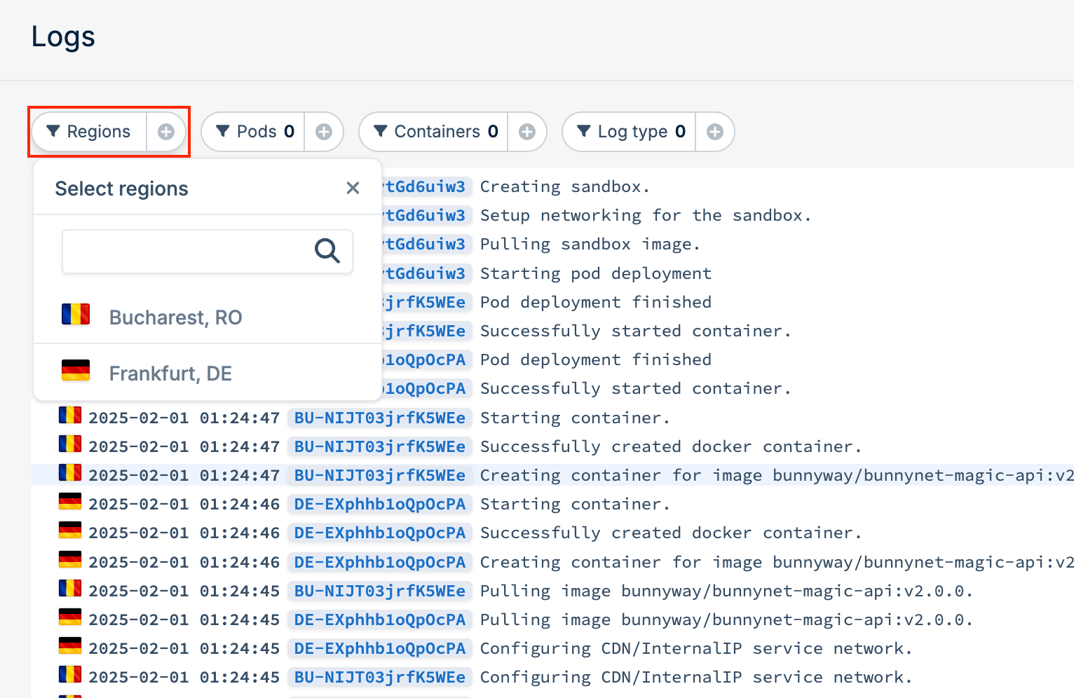 Filtering logs by application or region is also helpful if you manage many deployments across different environments.