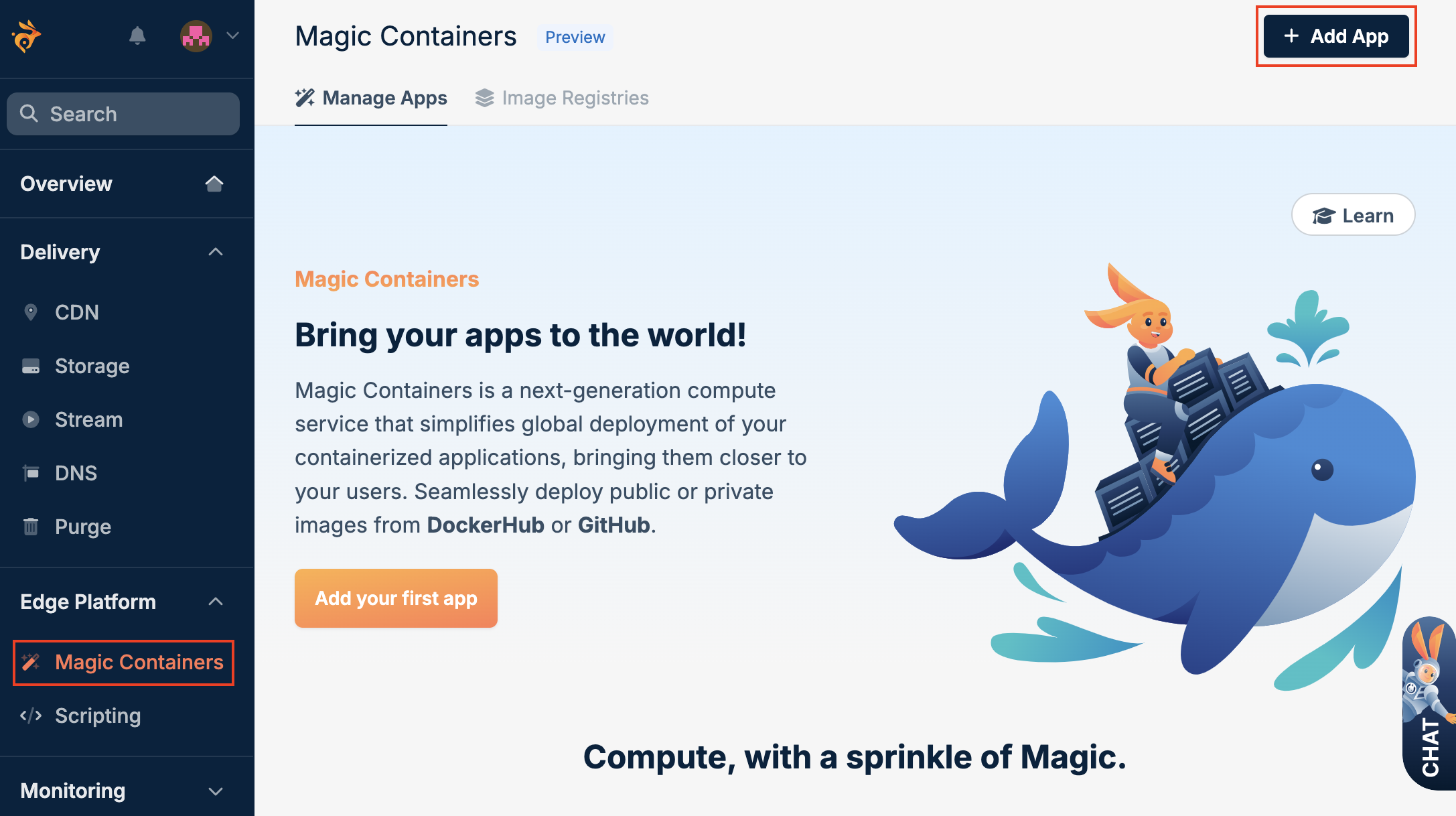 In the bunny.net dashboard, go to Magic Containers and click Add App.