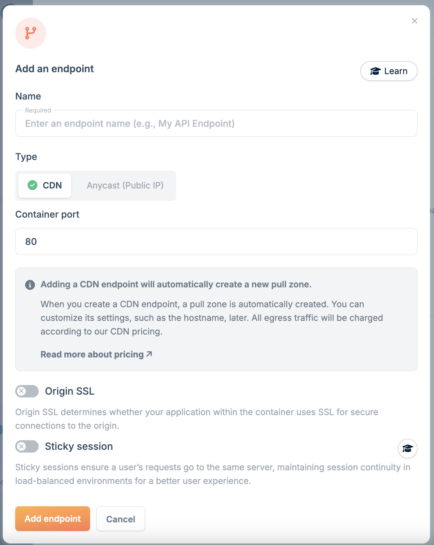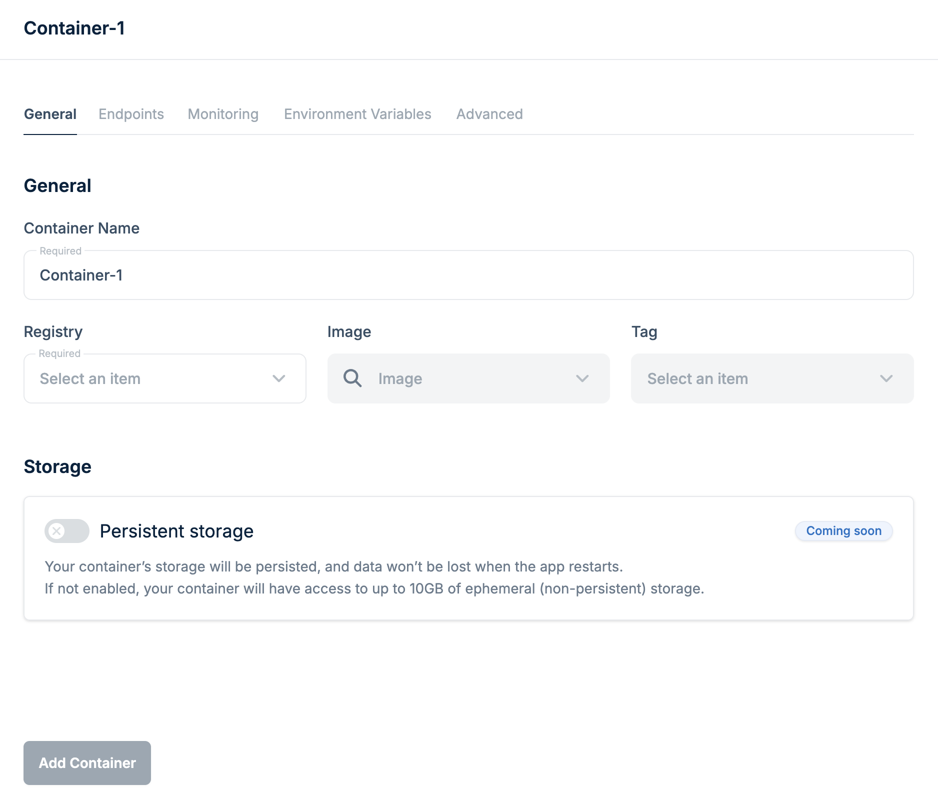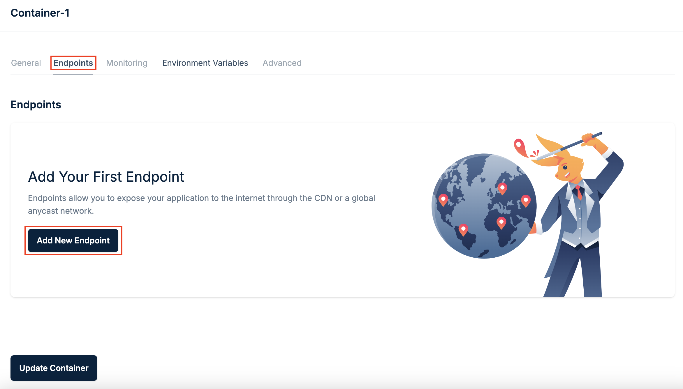 Click Add endpoint, then click Add Container.