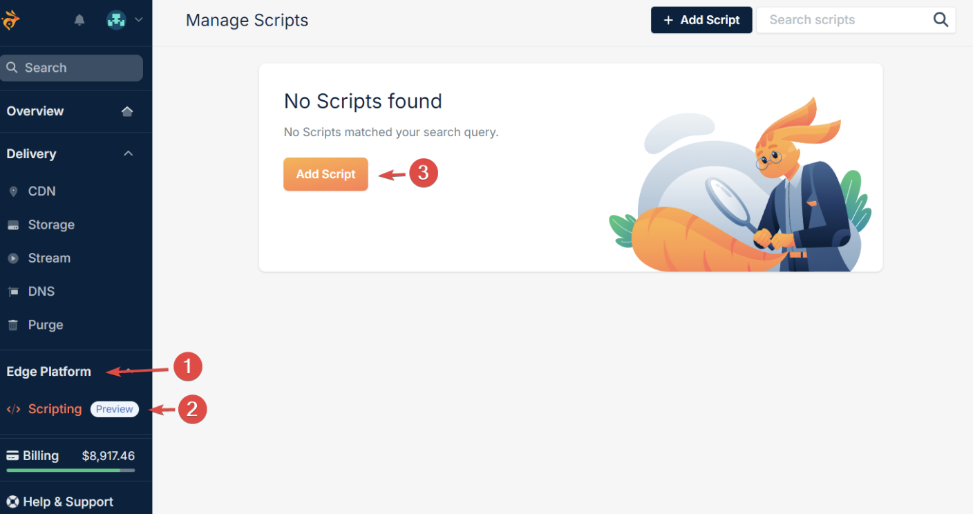 - Navigate to Edge Platform > Scripting and click Add Script.