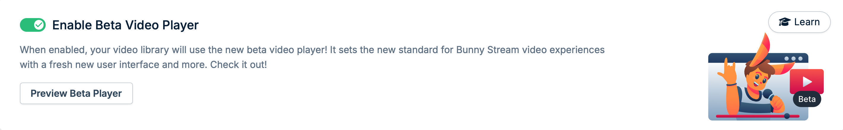 You can also activate the beta player over API on your video library using the following cURL commands via the ‘Update video library’ endpoint in the Stream API Reference. To enable beta video player:About