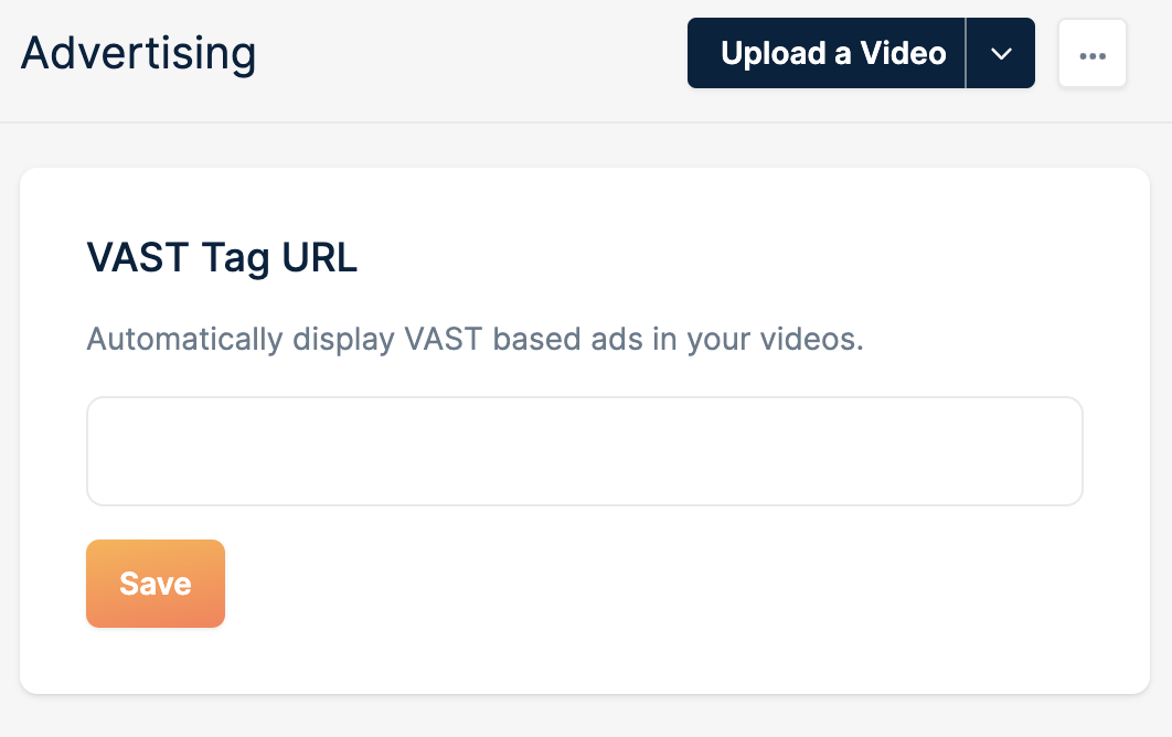 The Advertising section allows you to monetize your content by displaying VAST-compatible ads within your videos.