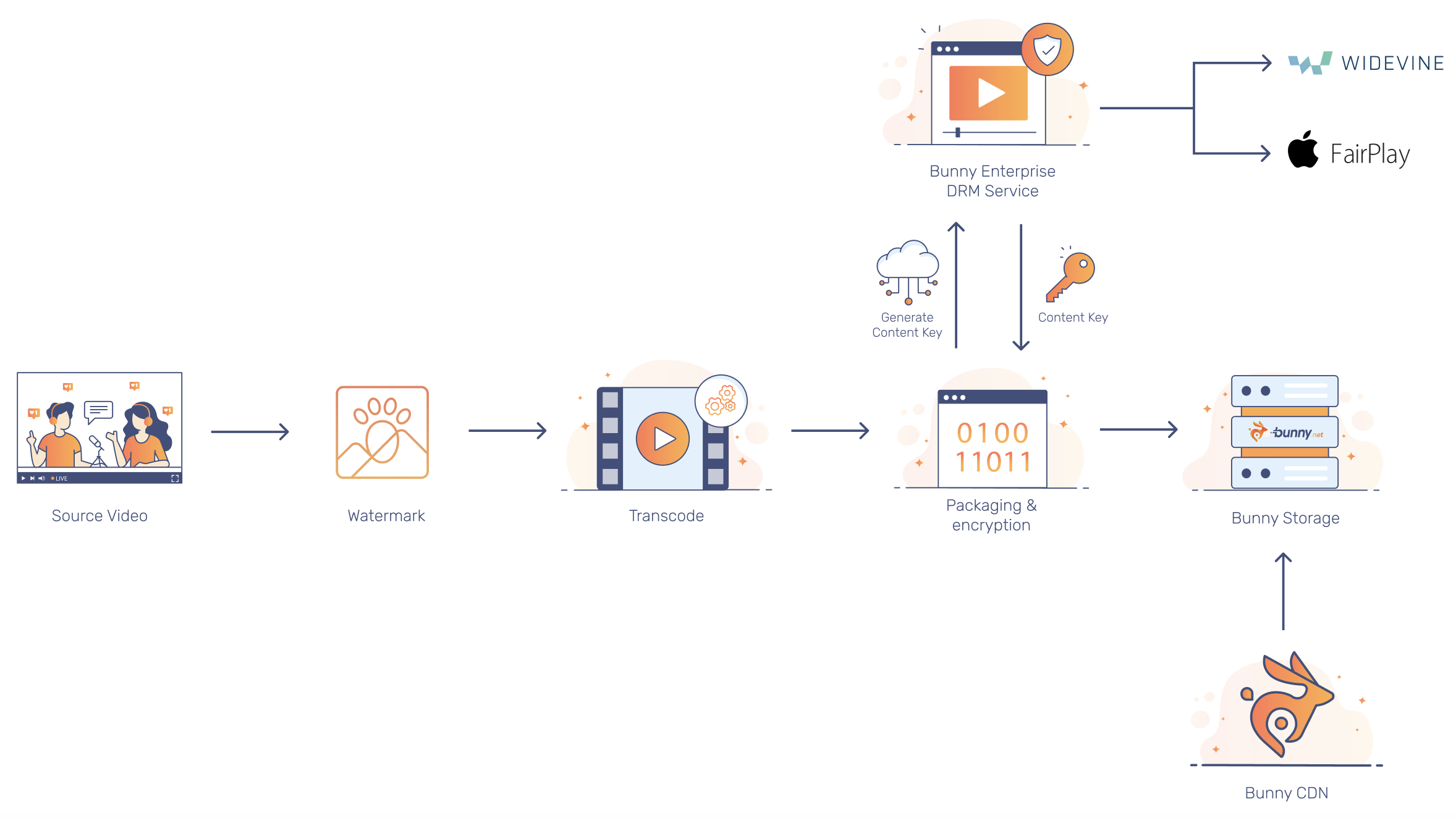 - Automatic encryption during packaging: Content is automatically protected during the transcoding process.