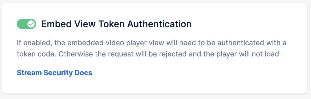 The license service endpoint employs referrer protection and embed token authentication to secure requests, similar to our player Embed View. That means if token authentication is enabled it should also be present in requests going to DRM license endpoint ( the same is for referrer protection and token authentication). These security rules ensure that only requests from authorized sources with valid tokens are processed if configured. For the authentication to work, it has to be enabled in dashboard: