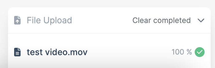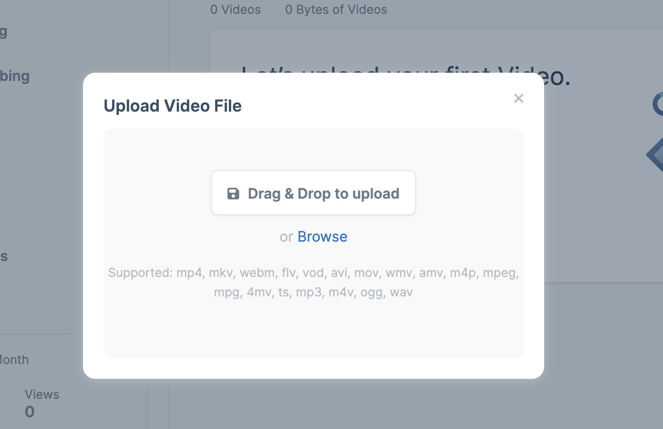 - A new popup will open, allowing you to select or drag the video files which will automatically start the upload.