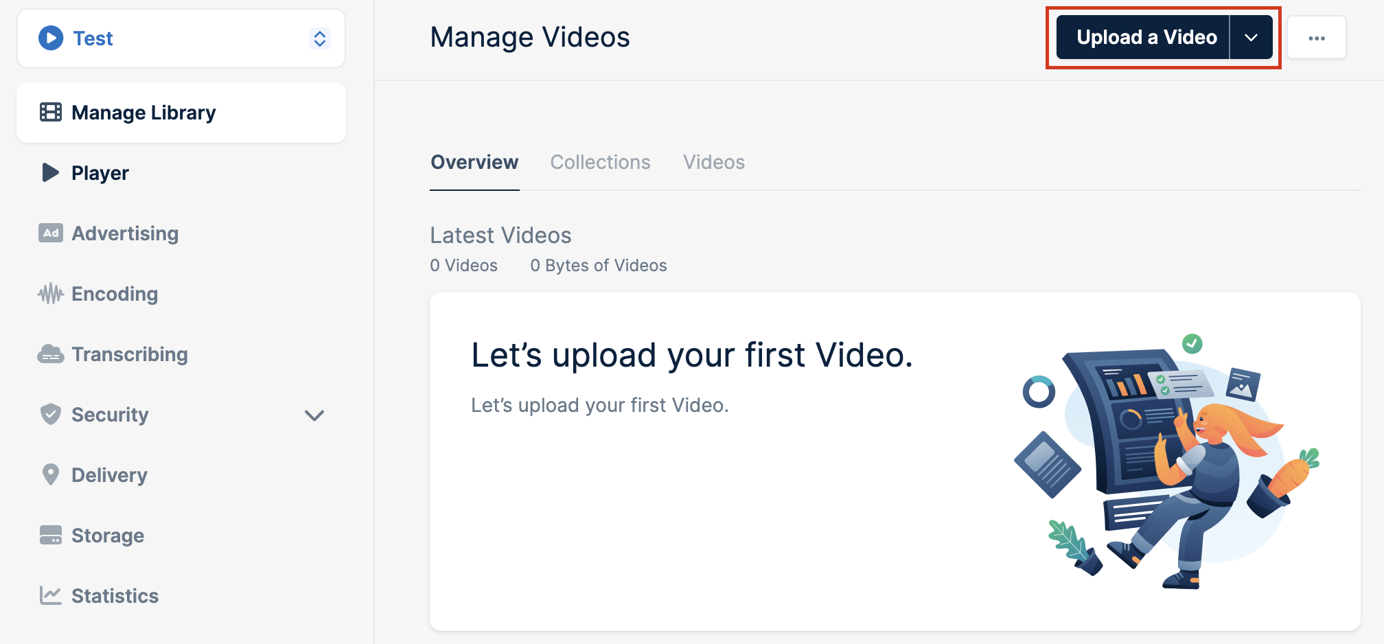 With your video library ready, it’s time to upload your first video:- Click Upload a Video.